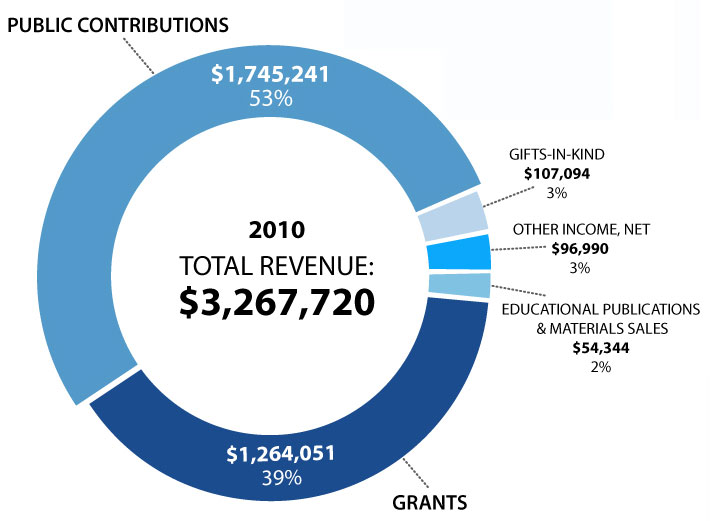 2010 Total Expenses: $3,199,856 Programs - $2,685,194 = 84% Public Awareness: